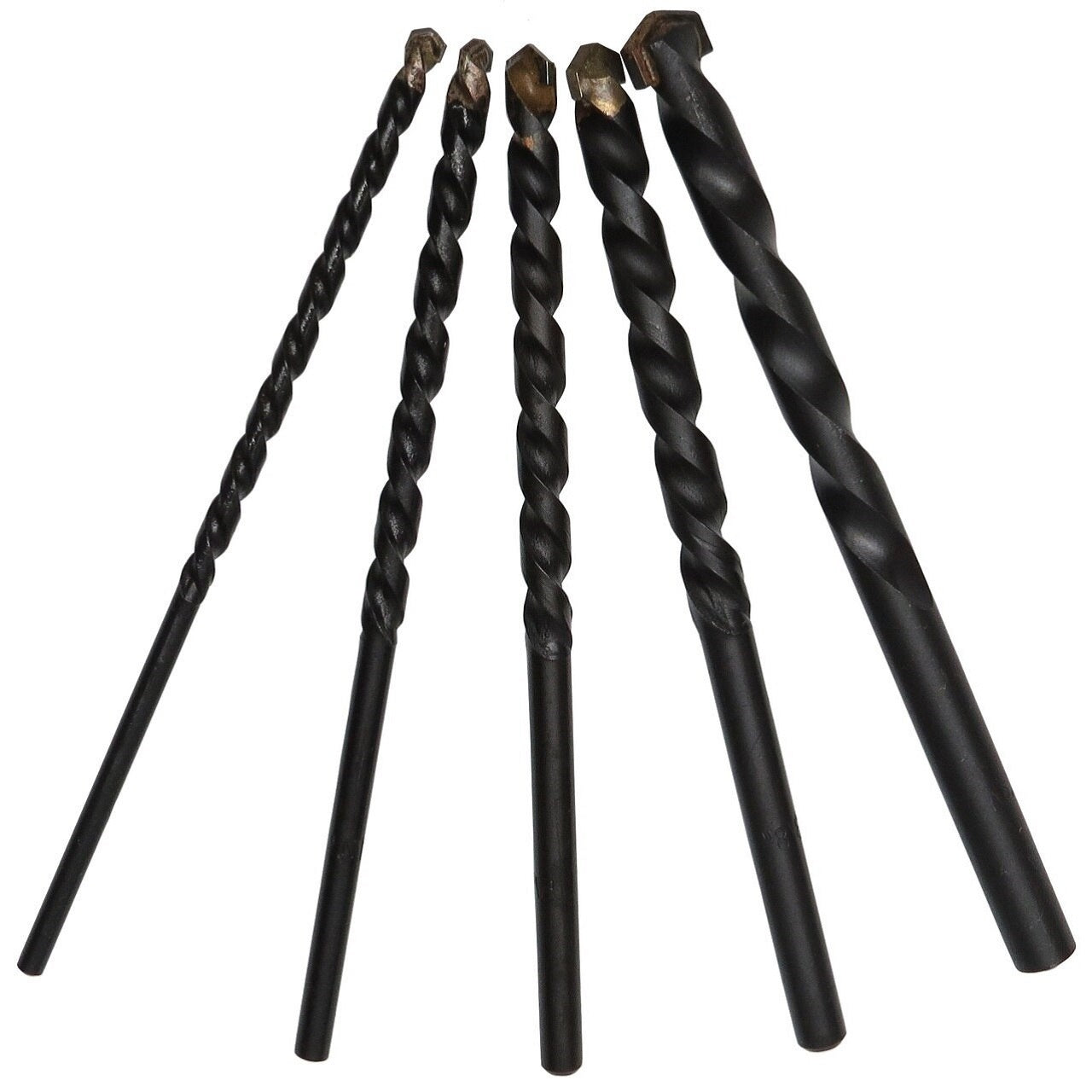 Size: Set, Material: Carbide Tipped, Finish: Black Oxide, Overall Length: 6, Shank Type: Round, Style: Masonry, Cutting Direction: Right Hand, Pieces in Set: 5